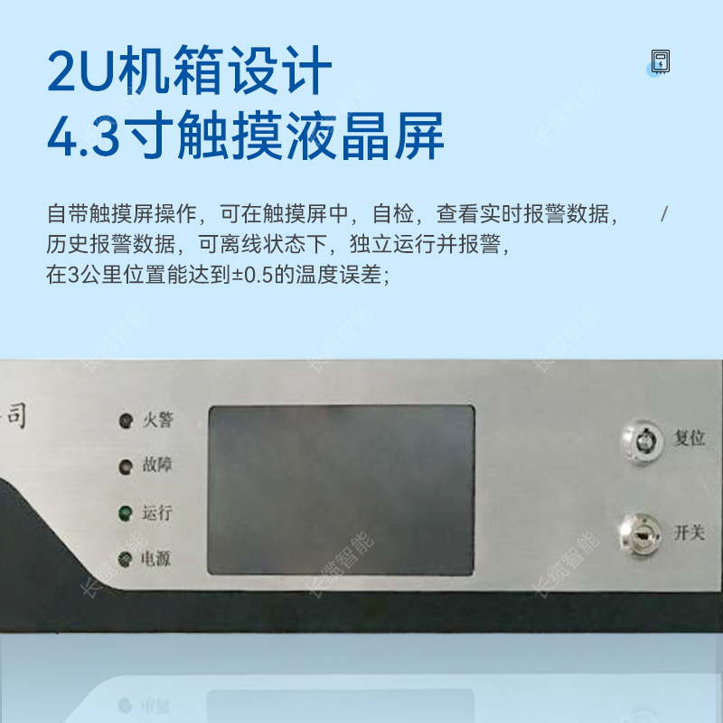 Ø 主机自带触摸屏操作,可在触摸屏中,自检,查看实时报警数据,历史报警数据,可离线状态下,独立运行并报警,在3公里位置能达到士0.5的温度误差;