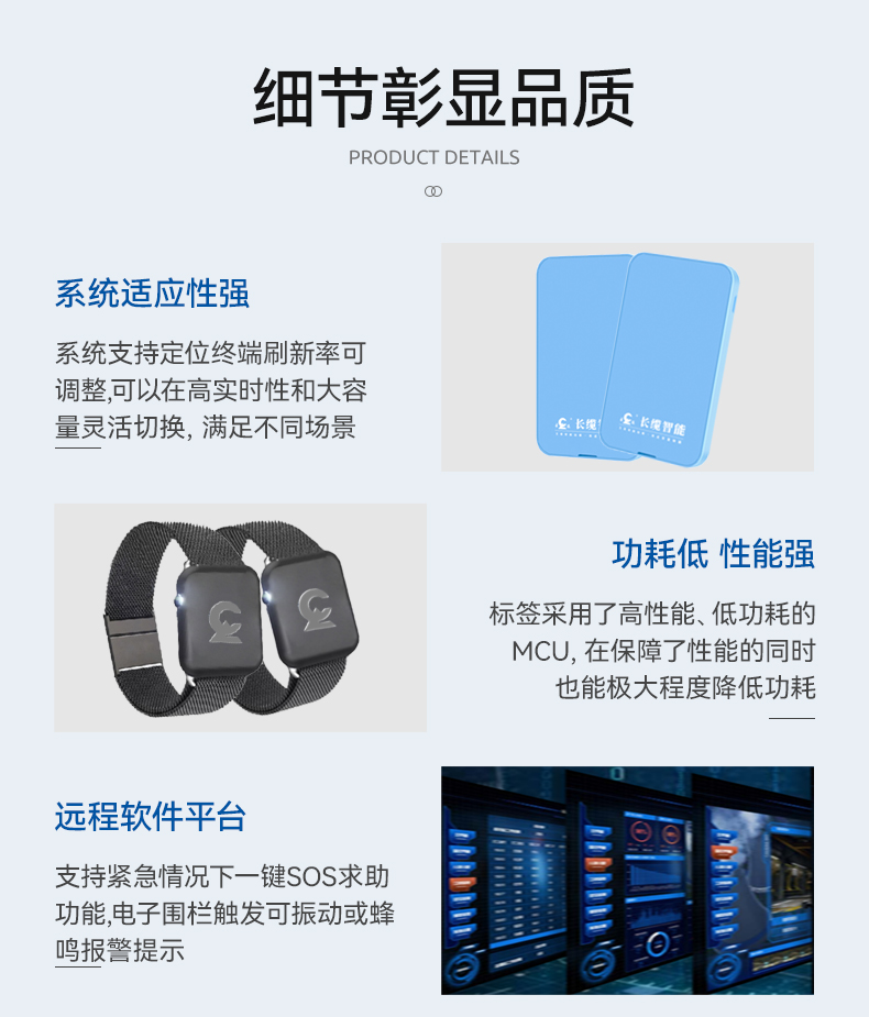 系统由基于UWB技术的基站、人员定位标签、定位软件等组成。系统中标签和基站通过UWB脉冲信号进行通信基站将标签的信息数据采集后转发给定位服务器,数据通过脉冲算法进行定位。