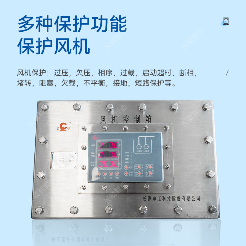 Ø 风机保护:过压,欠压, 相序, 过载, 启动超时,断相,堵转, 阻塞,欠载,不平衡,接地,短路保护等。