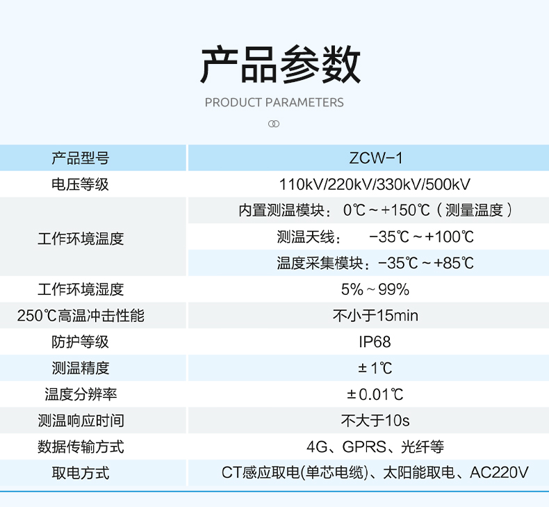 Ø 无源温度采集:测温模块内置在接头线芯处,为全无源型,无需定期更换电池和维护。