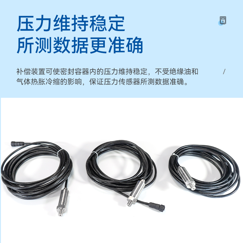 Ø 补偿装置可使密封容器内的压力维持稳定,不受绝缘油和气体热胀冷缩的影响,保证压力传感器所测数据准确。